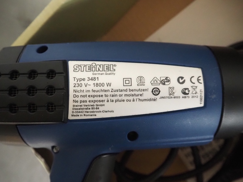 Steinel hot air gun, 230 V, 1800 W, dimensions: 250 mm x 280 mm x 100 mm. Technical condition unknown
