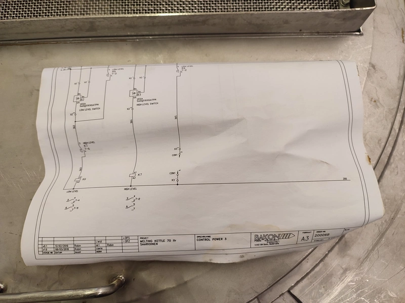 Bakon B.V. Food Equipment melting kettle, serial number: 20006B, year of construction: 2010, 3 Ph, 50 Hz, 7.5 kW, capacity: 70 L, dimensions: 1700 mm x 1100 mm x 960 mm.