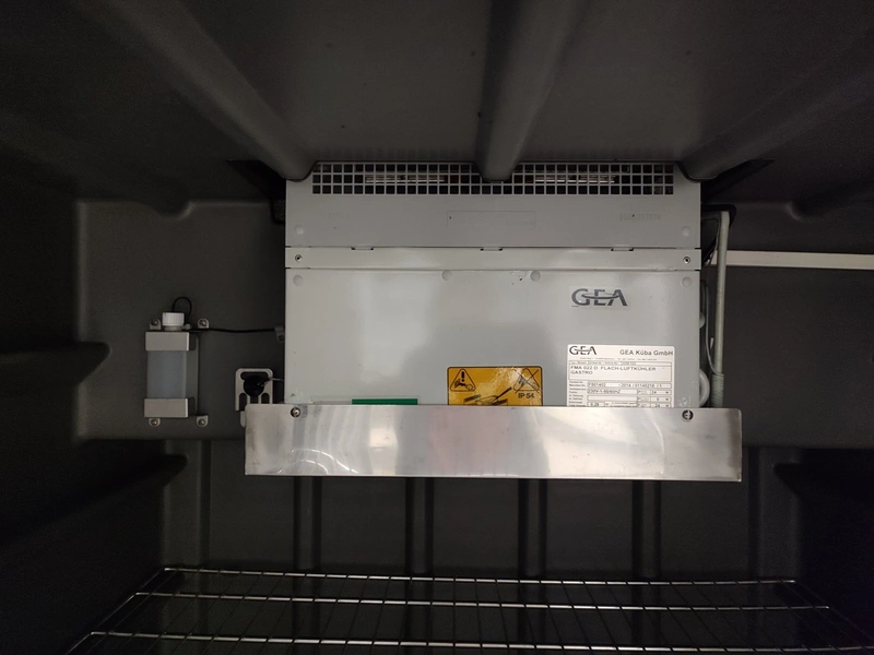Dometic refrigerated container, model: CF 850 Van HF, serial number: 5111299, 220-240 V, 50-60 Hz, 1.33 A, 360 W, refrigerant: R314a, 135 gram, volume: 850 liter, dimensions: 1100 mm x 1400 mm x 1000 mm.