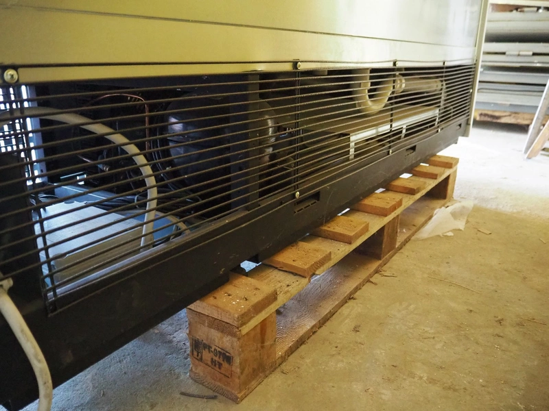 ISA refrigerated showcase, model: SLIM, type: Market Murali, serial number: 3110749296, year of construction: 06.07.2011, 230 V, 50 Hz, 17.2 A, 3500 W, refrigerant: R404a, 0.950 kg, 4 floors, dimensions each floor: 1840 mm x 300 mm, total dimensions: 1900 mm x 640 mm x 2200 mm.