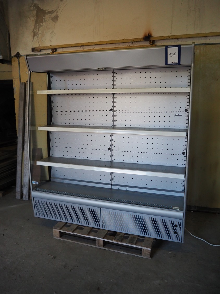 ISA refrigerated showcase, model: SLIM, type: Market Murali, serial number: 3110749296, year of construction: 06.07.2011, 230 V, 50 Hz, 17.2 A, 3500 W, refrigerant: R404a, 0.950 kg, 4 floors, dimensions each floor: 1840 mm x 300 mm, total dimensions: 1900 mm x 640 mm x 2200 mm.