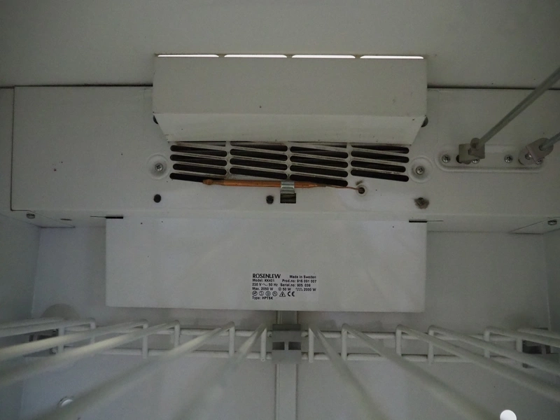 Rosenlew drying cabinet, model: KK401, serial number: 905 039, 230 V, 50 Hz, 2050 W, 4 floors, floor dimensions: 550 mm x 500 mm, total dimensions: 600 mm x 600 mm x 1860 mm.