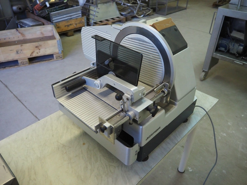 Bizerba automatic slicer, type: VS 6 D, machine number: 1178355, 230 V, 50 Hz, 2.1 A, 0.4 kW, dimensions: 820 mm x 600 mm x 540 mm.