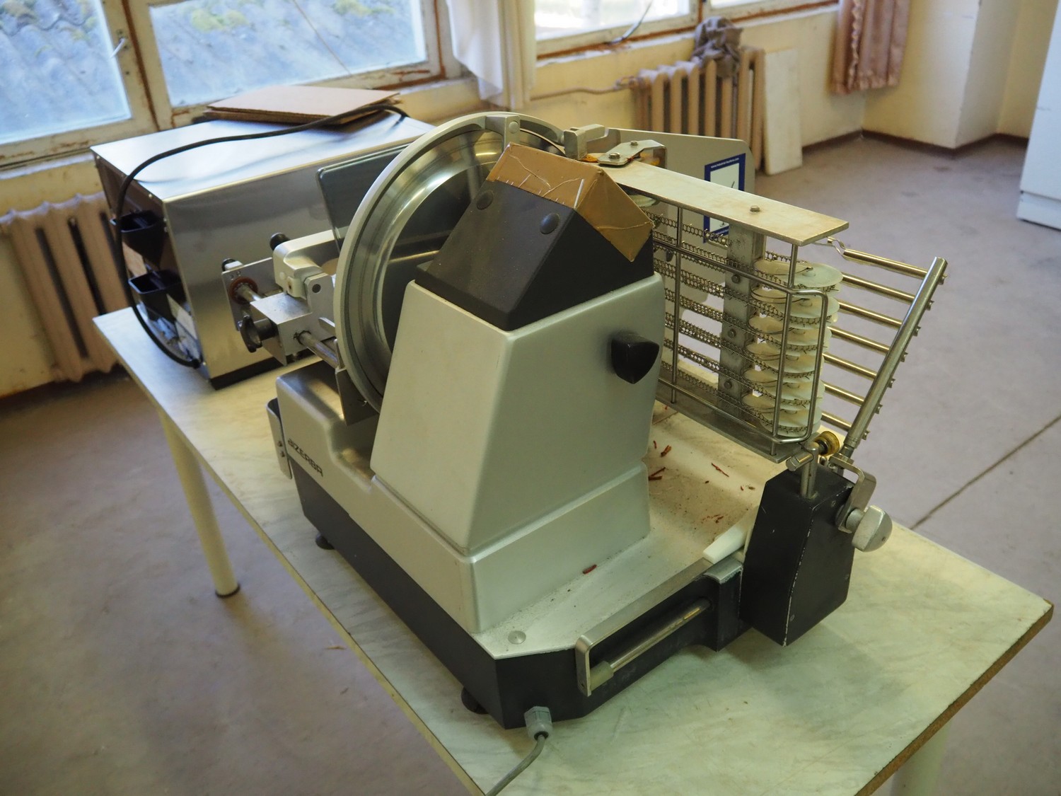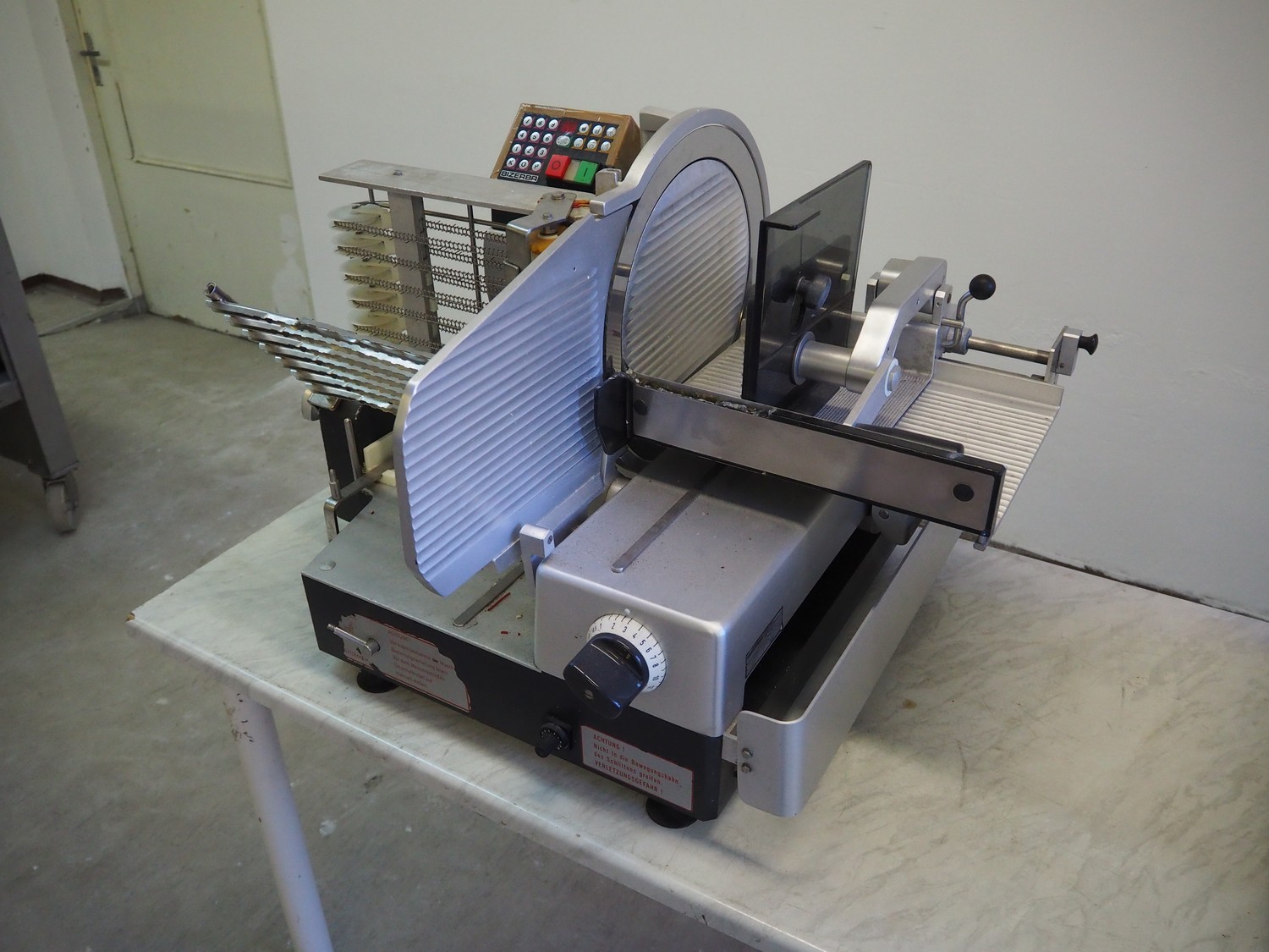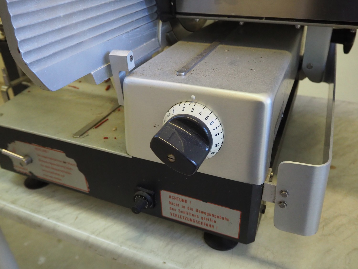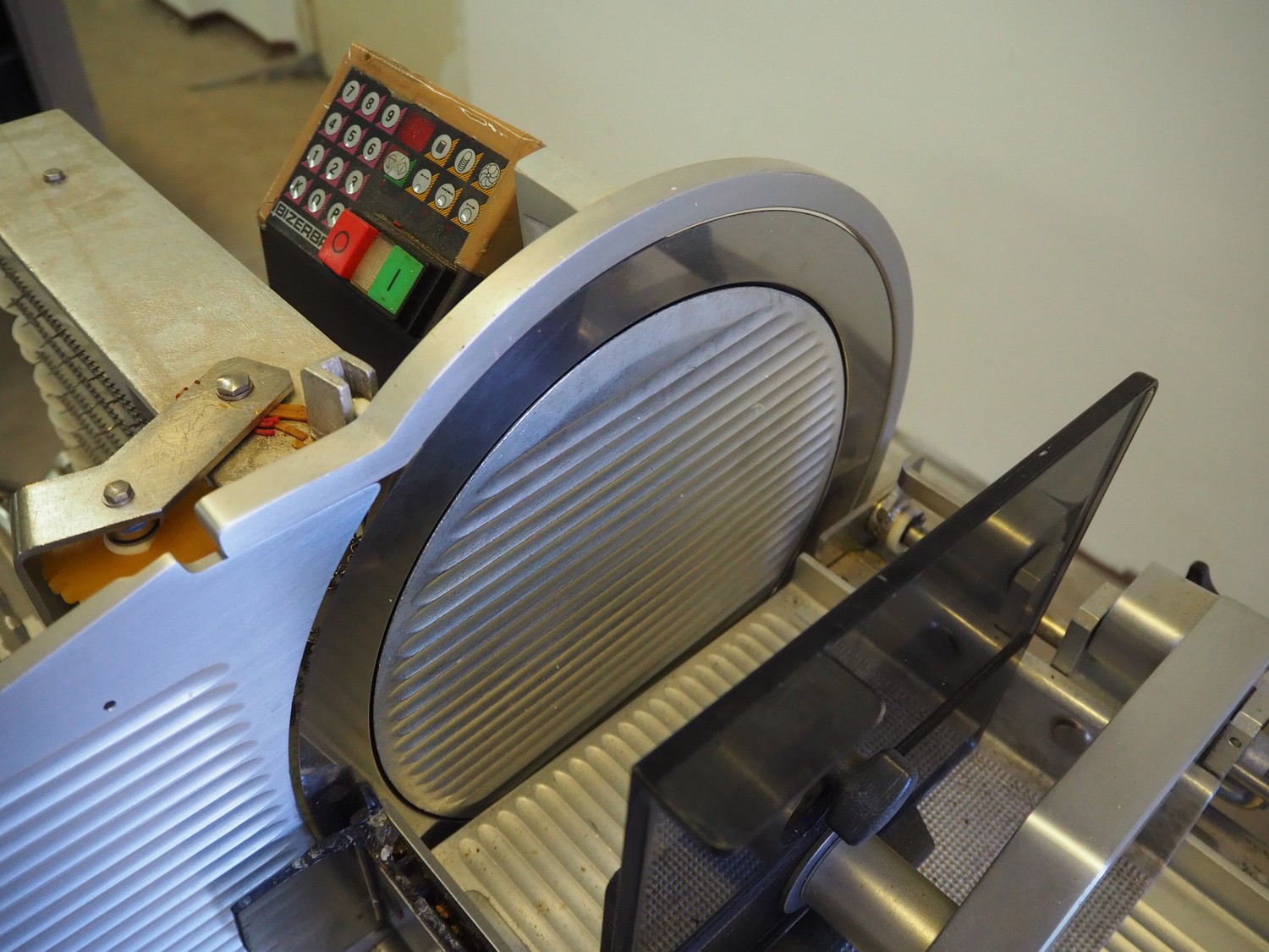 Bizerba automatic slicer, type: VS 6 D, machine number: 1178355, 230 V, 50 Hz, 2.1 A, 0.4 kW, dimensions: 820 mm x 600 mm x 540 mm.