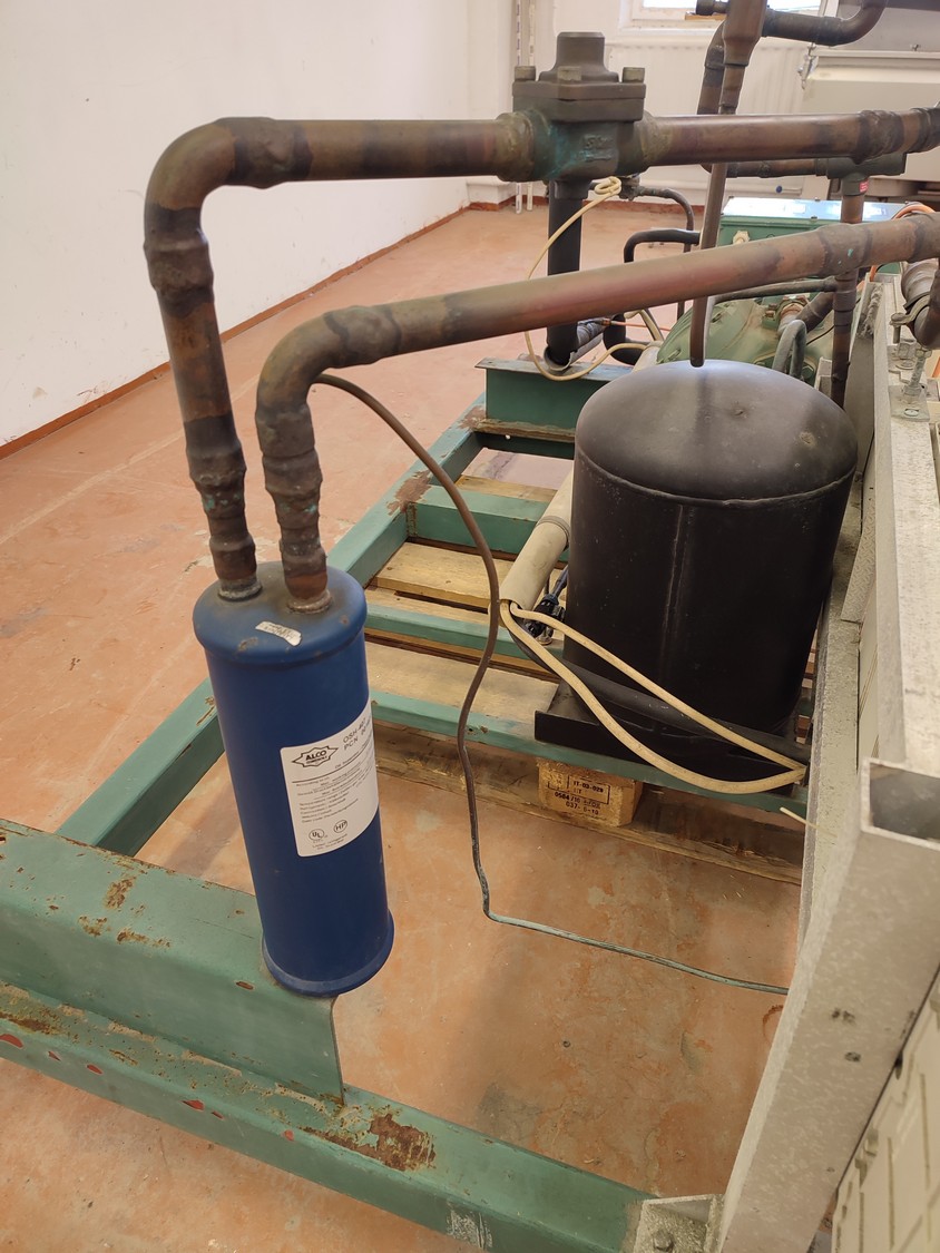Bitzer Kühlmaschinenbau Gmbh cooling compressor, type 4J-13.2, serial number 664102468, 380-420 / 440-480 V, 3 Ph, 50/60 Hz, 27 A, 63.5/76.6 m³ per hour, dimensions 2330 mm x 1000 mm x 1000 mm.
