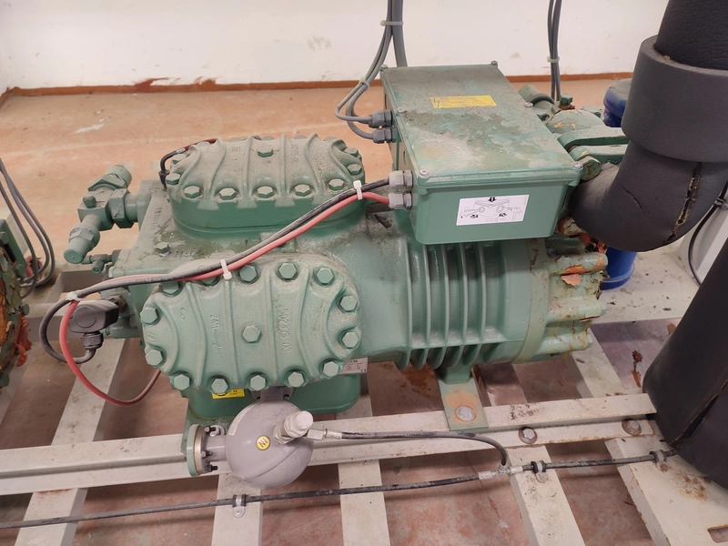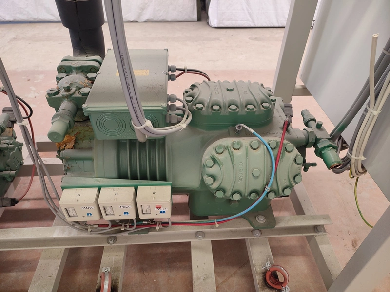 Compressor rack with 2 Bitzer Kühlmaschinenbau GmbH cooling compressors, type: 6G-30.2Y-40P, serial number: 1680610377 and 16806110376, 380-420/440-480 V, 3 Ph, 50/60 Hz, 253 A, 126.8/153.1 m³ per hour, refrigerant: R404A, dimensions: 2510 mm x 800 mm x 2040 mm.
