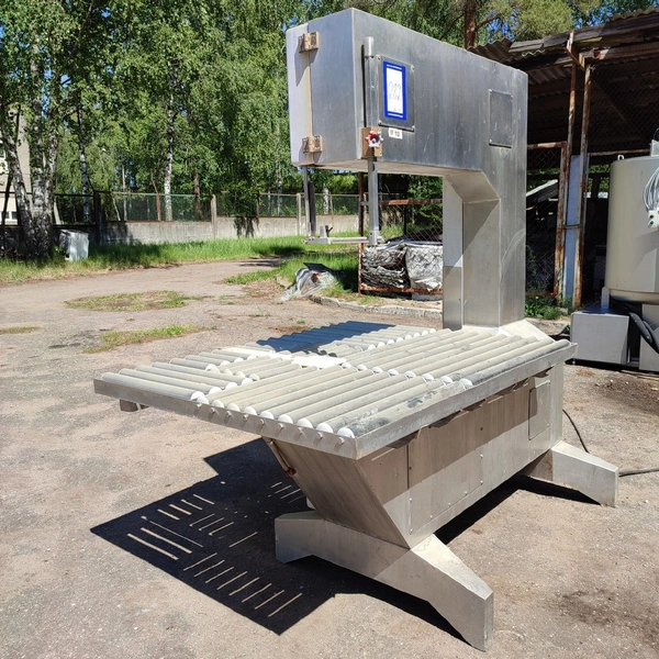 KT bandsaw, model: KT-1100, number: 96457, 380 V, 3 Ph, 50 Hz, 9 A, 4 kW, s/s rollers, dimensions table: 1600 mm x 1300 mm, total dimensions: 2100 mm x 1500 mm x 2200 mm.
