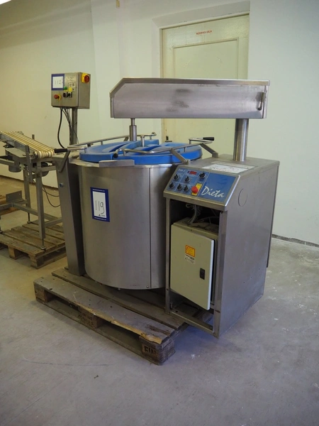 Dieta tiltable steam heated cooking vessel with agitator, type: SM 45, serial number: 960906, 208-240 V, 1 Ph, 2 kW, 13 A, maximum pressure: 1 bar, maximum temperature: 120 °C, steam volume: 98 liter, volume cooking vessel: 150 liter, dimensions: 1400 mm x 900 mm x 1400 mm. Incomplete, technical condition unknown.