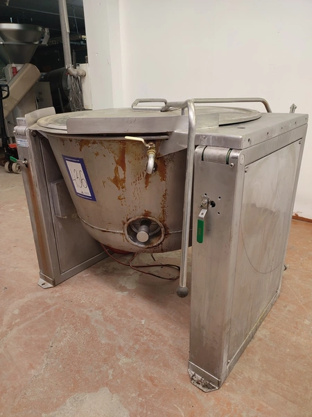 RTL tiltable cooking vessel, inside dimensions: ø 1000 mm x 600 mm, total dimensions: 1300 mm x 1400 mm x 1100 mm.