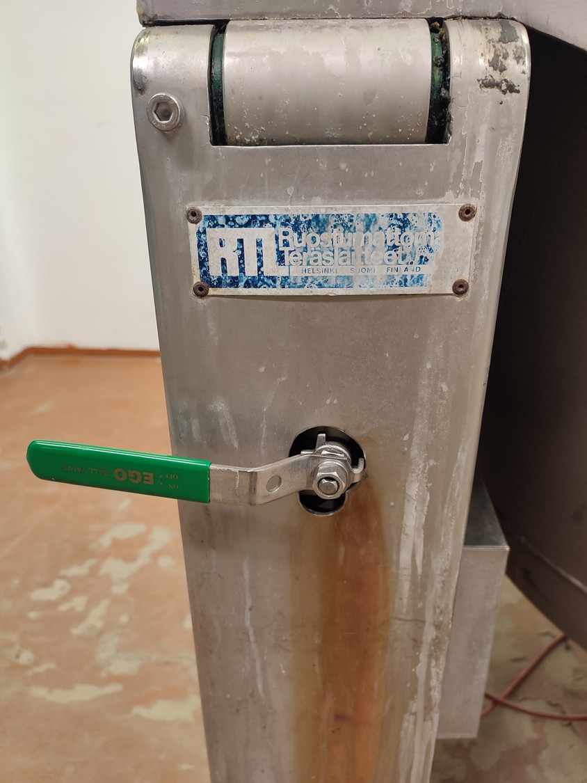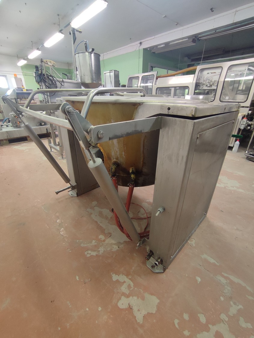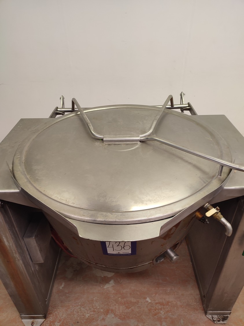 RTL tiltable cooking vessel, inside dimensions: ø 1000 mm x 600 mm, total dimensions: 1300 mm x 1400 mm x 1100 mm.