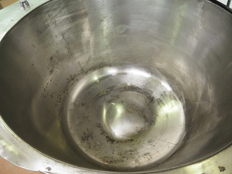 Tiltable cooking vessel, inside dimensions: Ø 1170 mm x 650 mm, total dimensions: 1550 mm x 1450 mm x 1100 mm.