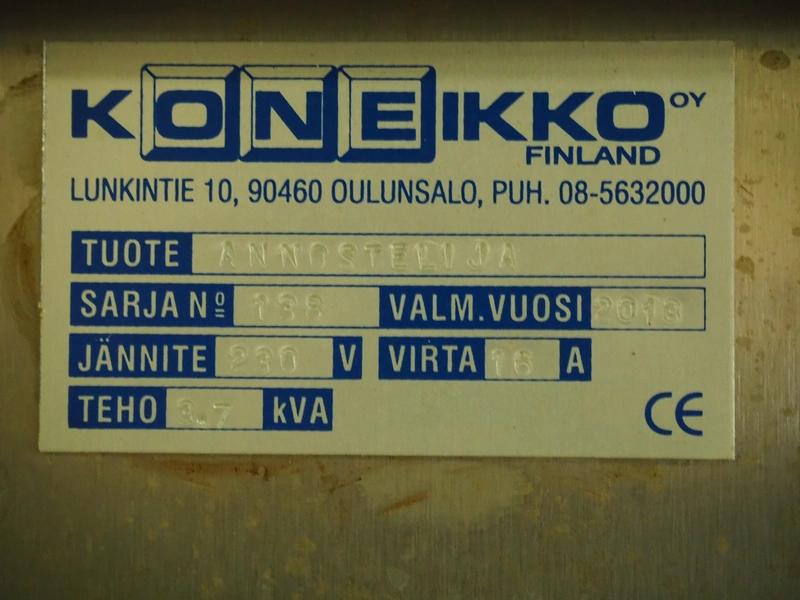 Koneikko Oy mobile depositor, serial number: 138, year of construction: 2013, 230 V, 16 A, dimensions: 1070 mm x 710 mm x 2060 mm. Incomplete.