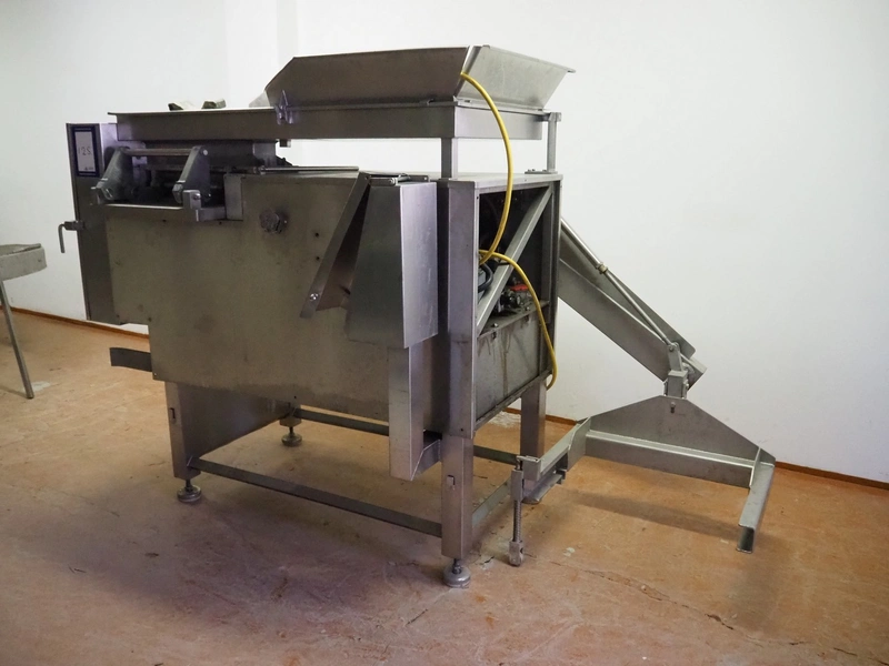 Holac dicer with lifter for 200 liter meat bins, dimensions chamber: 115 mm x 115 mm, total dimensions: 2100 mm x 950 mm x 1750 mm. Incomplete, technical condition unknown.