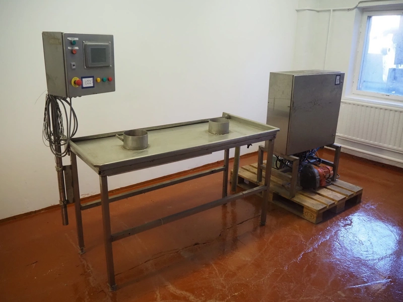 S/s bucket filling table with switch cabinet, dimensions table: 1600 mm x 740 mm x 1640 mm. With switch cabinet, dimensions: 1600 mm x 740 mm x 1640 mm