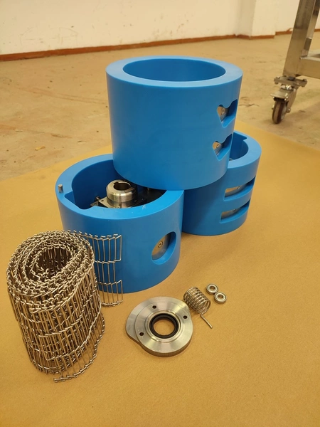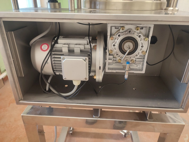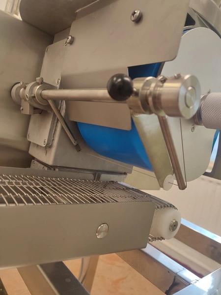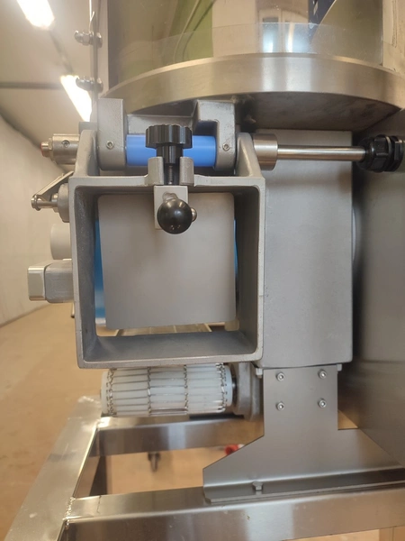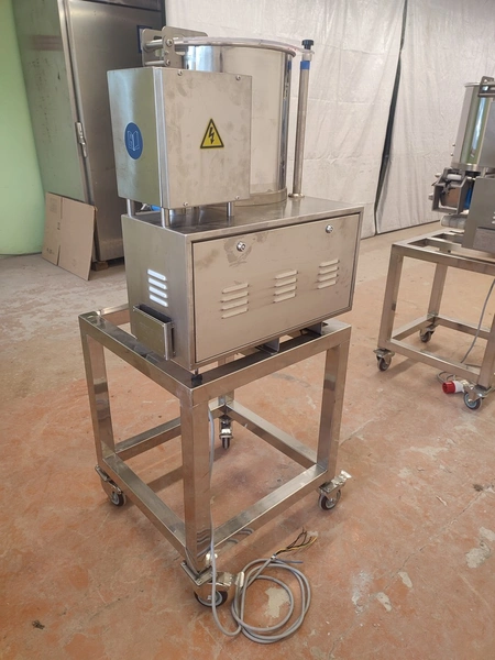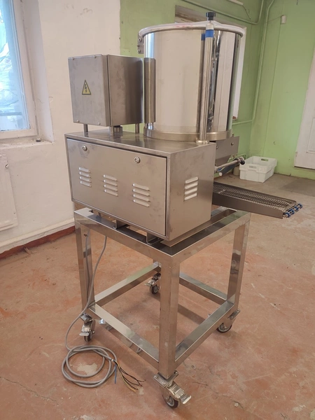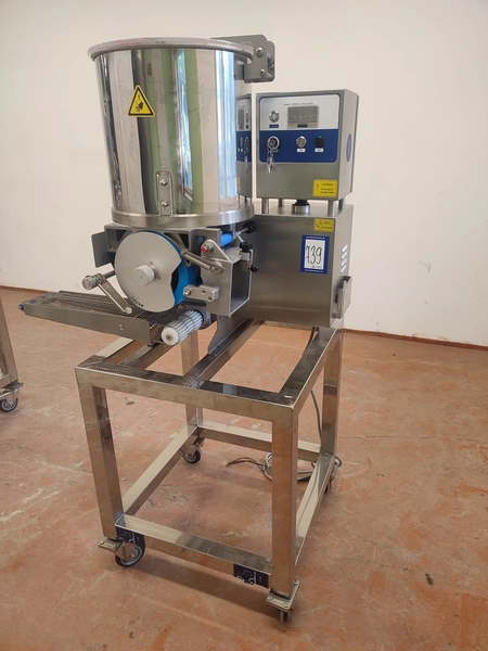 Jinan Hiwell Machinery Co., Ltd mobile hamburger forming machine, model: PATTY100-III, serial number: 0212360, year of construction: 15.08.2023, 380 V, 3 Ph, 50 Hz, 0.55 kW, weight: 100 kg, total dimensions: 900 mm x 600 mm x 1500 mm. Including extra belt and forms.