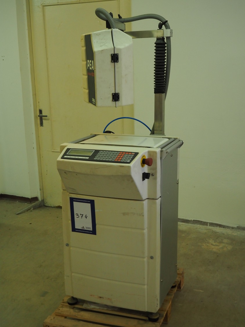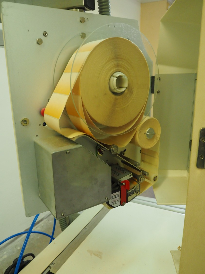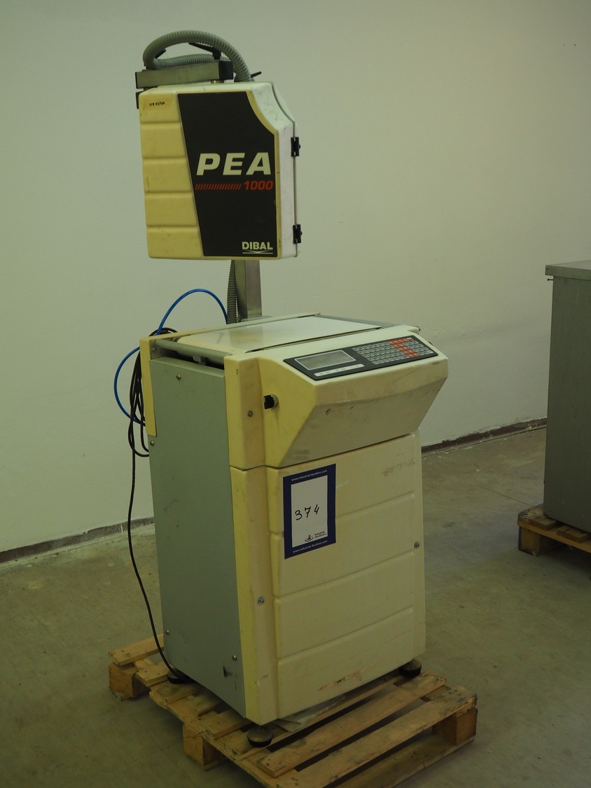 Dibal weighing and labelling machine, labeller model: PEA 1000, weigher model: System 1000, serial number: 036870/98, year of construction: 1998, maximum weight: 10 kg, minimum weight: 100 gram, e= 5 gram, 220 V, 50 Hz, plastic belt, belt width: 275 mm, total dimensions: 600 mm x 700 mm x 1700 mm.