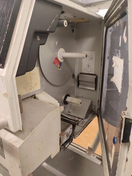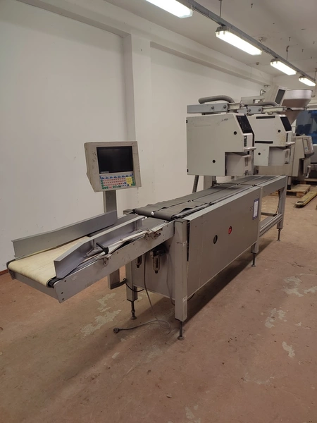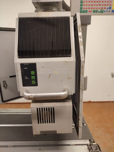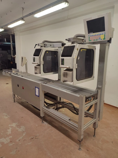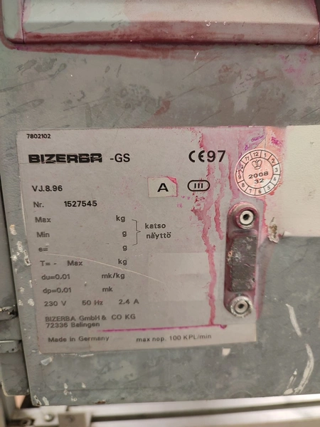 Bizerba weighing and labelling machine, model labeller: GS VJ.8.96, number: 1527545/1527545, 230 V, 50 Hz, 2.4 A, dimensions: 3490 mm x 600 mm x 1880 mm. Incomplete, technical condition unknown, for spare parts.
