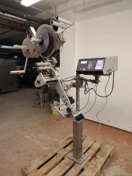 Collamat labelling machine, type: C9110/20/30, serial number: 1531, year of construction: 02/09, 110-240 V, 10/5 A, total dimensions: 1000 mm x 1000 mm x 1800 mm.