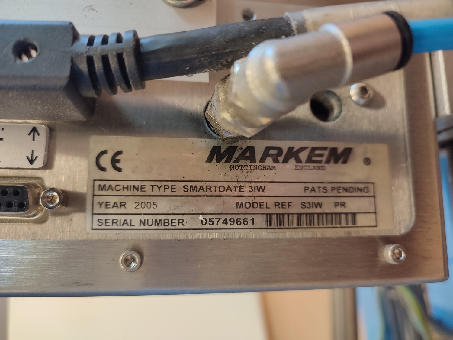 ATS binding machine with printer, type: US-2000 TTR-TR, number: BTA724 V5A85944, year of construction: 2008, 230 V, 1 Ph, 50 Hz, 5 A, Markem printer type: SMARTDATE 3IM, serial number: 08776574, year of construction: 2008, 115/230 V, 1 Ph, 50-60 Hz, 1.6/0.8 A, total dimensions: 1900 mm x 900 mm x 1330 mm.