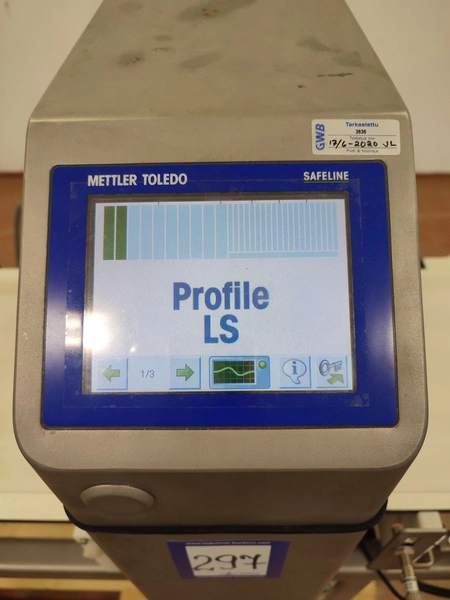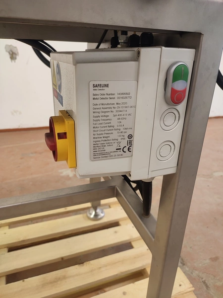 Mettler Toledo Safeline Ltd metal detector with rejector, model: V4-COMPACT, 100/240 V, 50/60 Hz, 340 W, plastic belt, belt width: 315 mm, clearance: 350 mm x 120 mm, total dimensions: 1530 mm x 720 mm x 1250 mm.