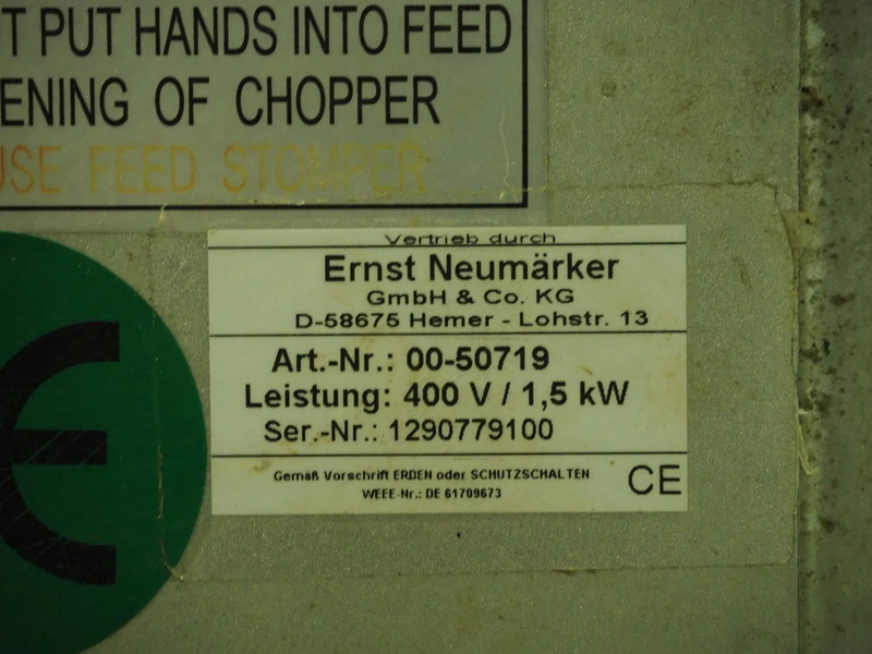 Ernst Neumärker GmbH & Co. KG mixer, serial number: 1290779100, 400 V, 1.5 kW, s/s bowl, dimensions bowl: Ø 350 mm x 320 mm, total dimensions: 800 mm x 540 mm x 1130 mm.