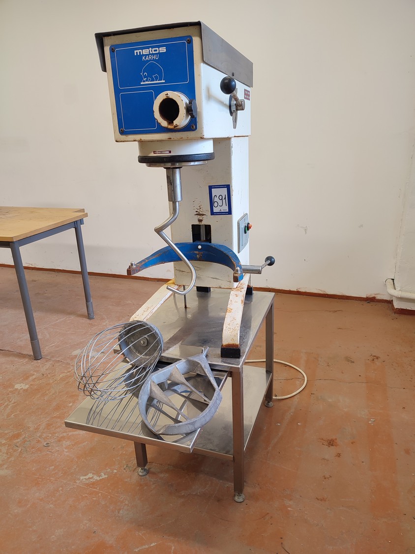 Metos mixer, type: R.20, number: 22029, year of construction: 1989, 380 V, 3 Ph, 50 Hz, 2.1 A, total dimensions: 430 mm x 610 mm x 1430 mm. Incomplete.