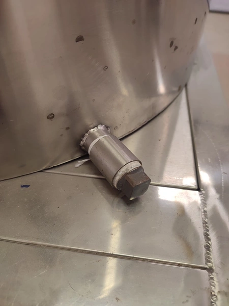 Heated mixing tank with transfer pump, inside dimensions: Ø 440 mm x 320 mm, total dimensions: 535 mm x 900 mm x 1520 mm.