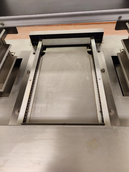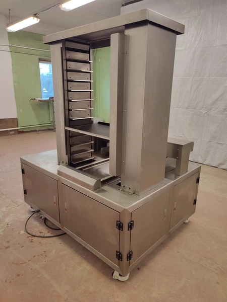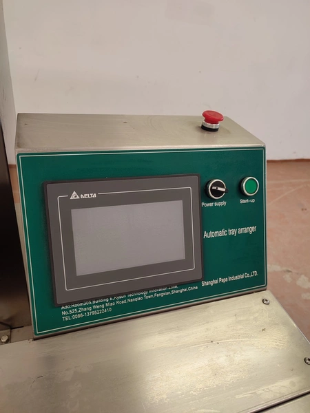 Shanghai Papa Industrial Co.,Ltd automatic tray arranger, model: P168-4, 220/380 V, 50/60 Hz, 2.2 kW, weight: 320 kg, baking tray dimensions: 595 mm x 395 mm, total dimensions: 1850 mm x 1060 mm x 1650 mm.
