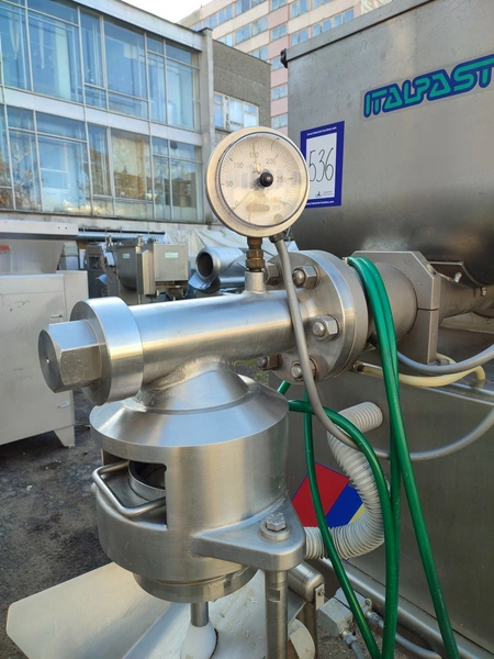 Italpast pasta extruder, model: MAC 200 S, serial number: 99013003, year of construction: 1999, 380 V, 50 Hz, 10 kW, weight: 1050 kg, dimensions: 1140 mm x 2350 mm x 2220 mm.