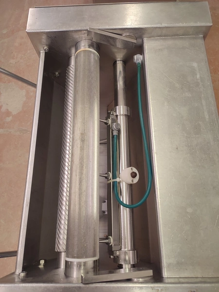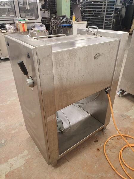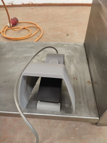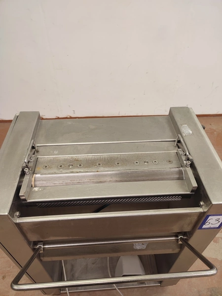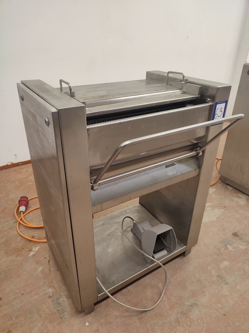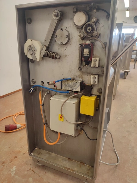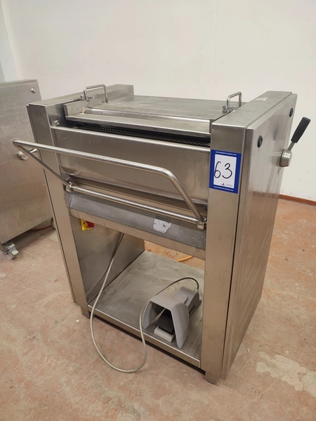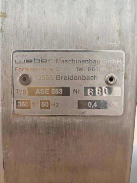 Weber Maschinenbau GmbH mobile skinning machine, type: ASE 553, number: 680, 380 V, 50 Hz, 0.4 kW, working width: 495 mm, total dimensions: 800 mm x 630 mm x 1030 mm.