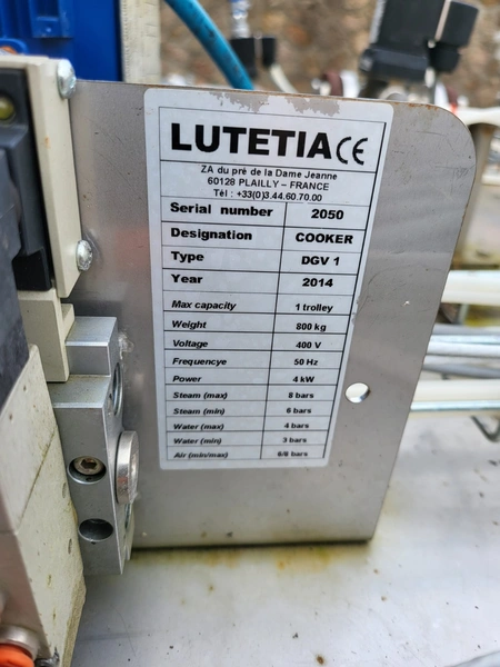 Lutetia cooking chamber, type: DGV 1, serial number: 2050, year of construction: 2014, 400 V, 50 Hz, 4 kW, weight: 800 kg, 14 floors, dimensions floors: 980 mm x 915 mm, dimensions switch cabinet: 750 mm x 535 mm x 450 mm, total dimensions: 1450 mm x 1500 mm x 3000 mm.