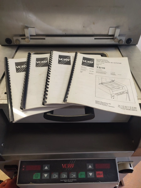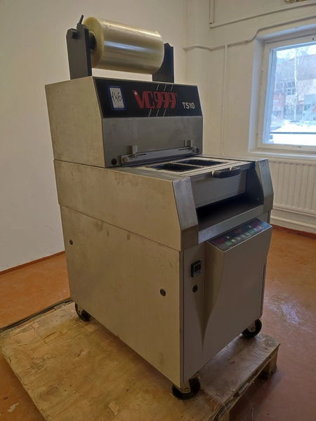 Inauen Maschinen AG mobile traysealer, type: VC999/TS 10 N, machine number: 4106129, year of construction: 2006, 400 V, 4 kW, 6-8 bar, 50 Hz, dye: (2x) 195 mm x 130 mm, film width: 360 mm, Rietschle vacuum pump, type: VCA 40 (10), machine number: 06 2610514, 1,1 kW, 40 m³ per hour, total dimensions: 1100 mm x 1300 mm x 1800 mm. Including pallet with film.