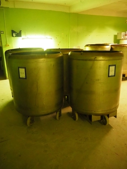 4 s/s mobile tubs for tumbler, inside dimensions: (4x) Ø 1000 mm x 1150 mm, total dimensions: (4x) Ø 1020 mm x 1370 mm. Missing lid…0 bidsLot is closed -