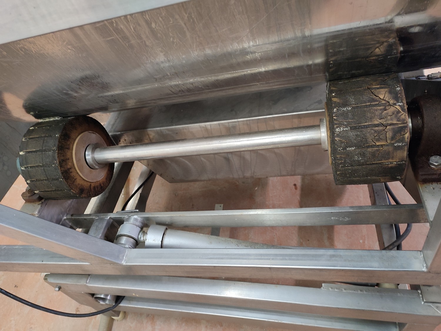 Vacuum tumbler installation with 2 s/s vacuum tumblers, dimensions barrel: (2x) ø 1000 mm x 1000 mm, total dimensions tumbler: (2x) 1270 mm x 1580 mm x 1670 mm, Busch vacuum pump, type: 063-136-64965, capacity: 63 m³ per hour, hydraulic pump, dimensions of vacuum and hydraulic unit: 970 mm x 560 mm x 1260 mm. Incomplete, no control panel.