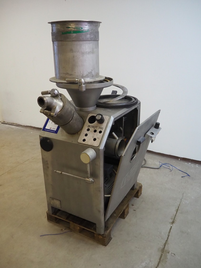 Vemag vacuum filling machine, model: 700, type: 133/230, number: 1330266, year of construction: 1998, 400/460 V, 13 A, dimensions: 860 mm x 560 mm x 1520 mm. Technical condition unknown, incomplete.