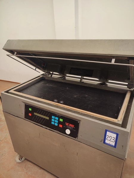 Inauen Maschinen AG mobile vacuum machine, type VC999 03 i F, machine number 0399 978, 400 V, 3 Ph, 50 Hz, 9 kW, 15 A, 5-6 bar, seal length: (2x) 450 mm and 960 mm, Rietschle vacuum pump, type: CLFH 220 (20), year of construction: 1998, capacity: 220 m³ per hour, total dimensions: 1100 mm x 775 mm x 1020 mm.