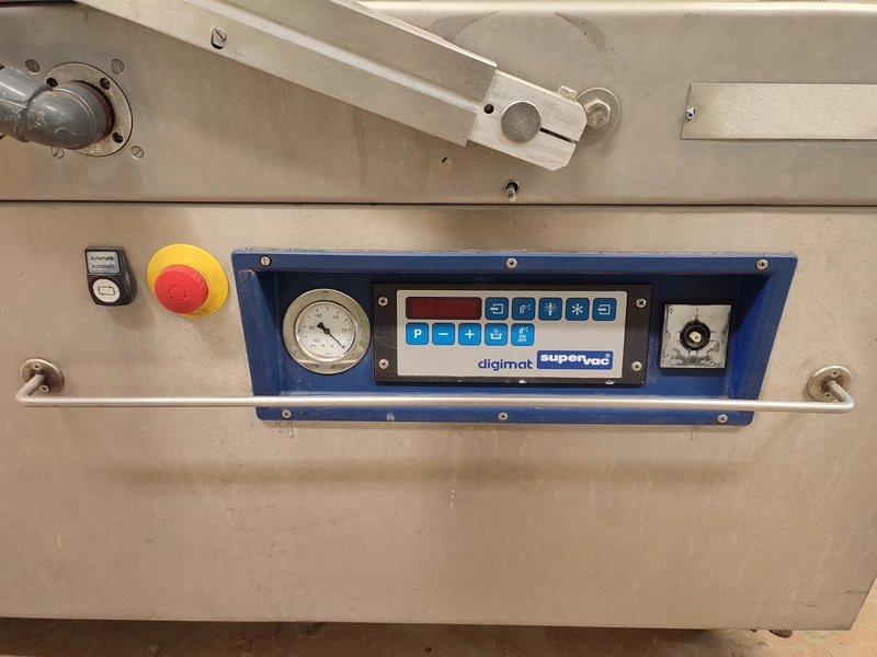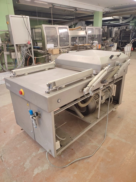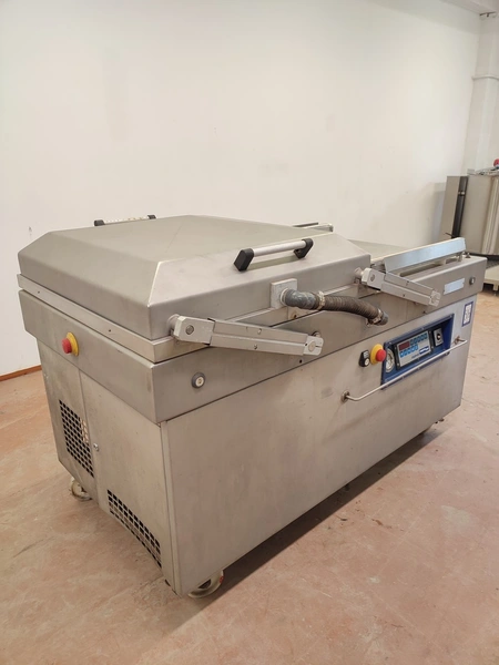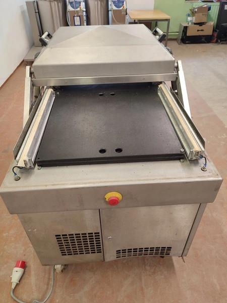 Supervac mobile double chamber vacuum machine, type: GK 289, number: 950047, year of construction: 1995, 400 V, 3 Ph, 50 Hz, 14 A, 5,6 kW, seal length: (4x) 660 mm, dimensions chamber: (2x) 660 mm x 780 mm, Busch vacuum pump, type: RA 160 B 4Z2 IQZZ, serial number: LL011E0202, year of construction: 1994, capacity: 160 m³ per hour, total dimensions: 1700 mm x 980 mm x 1100 mm. Technical condition unknow.