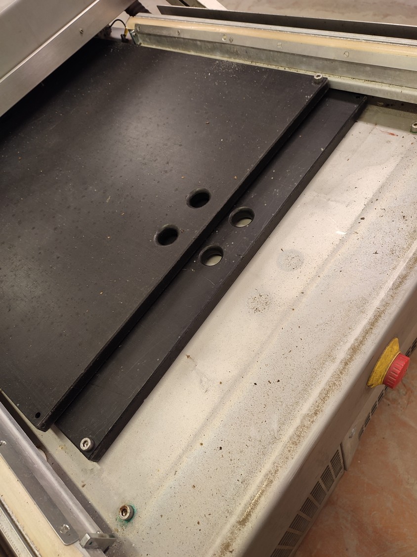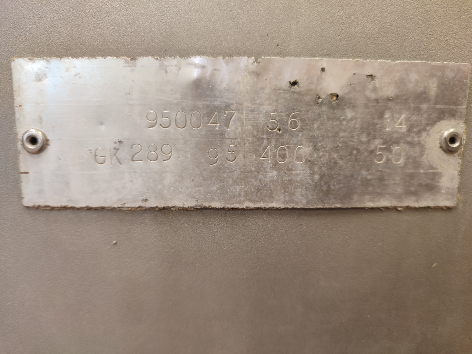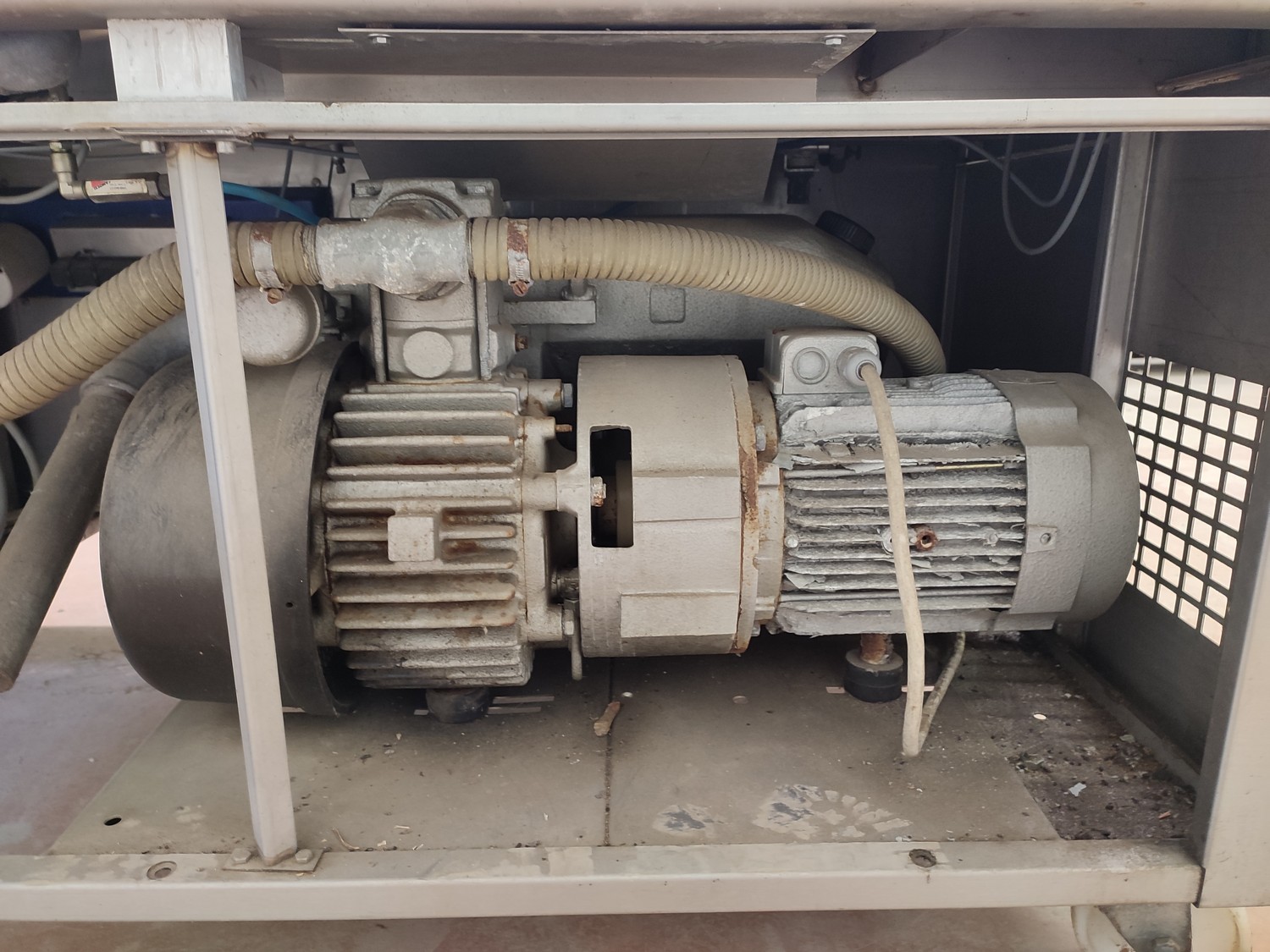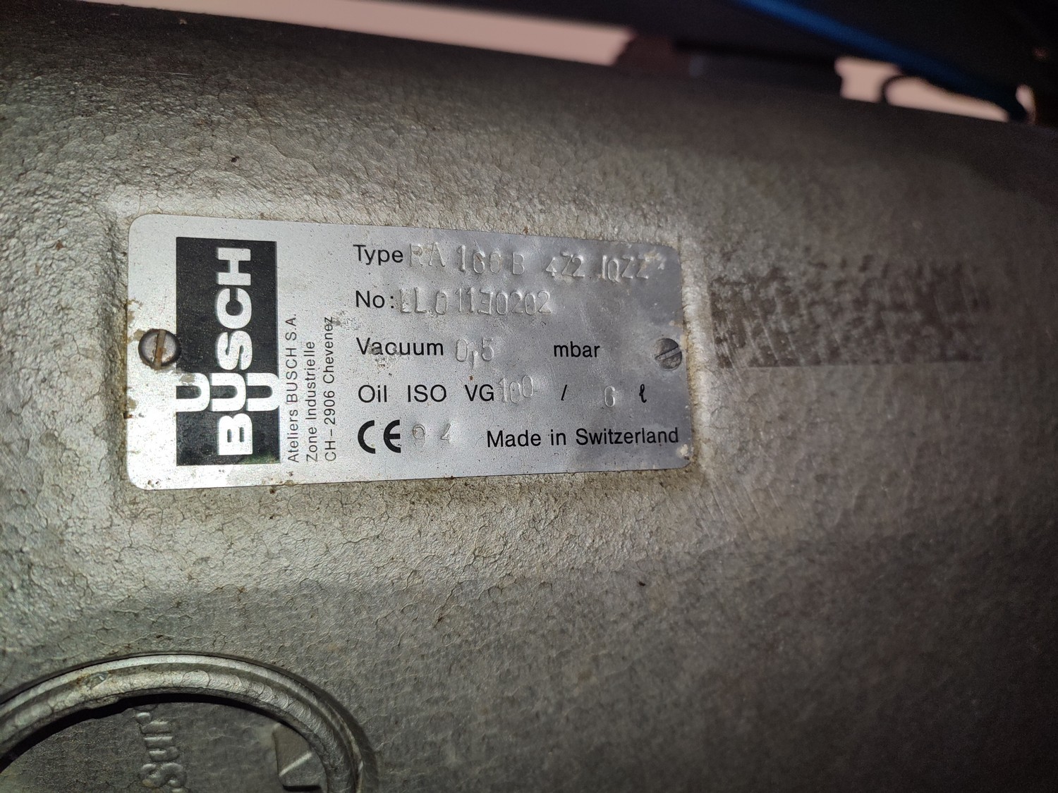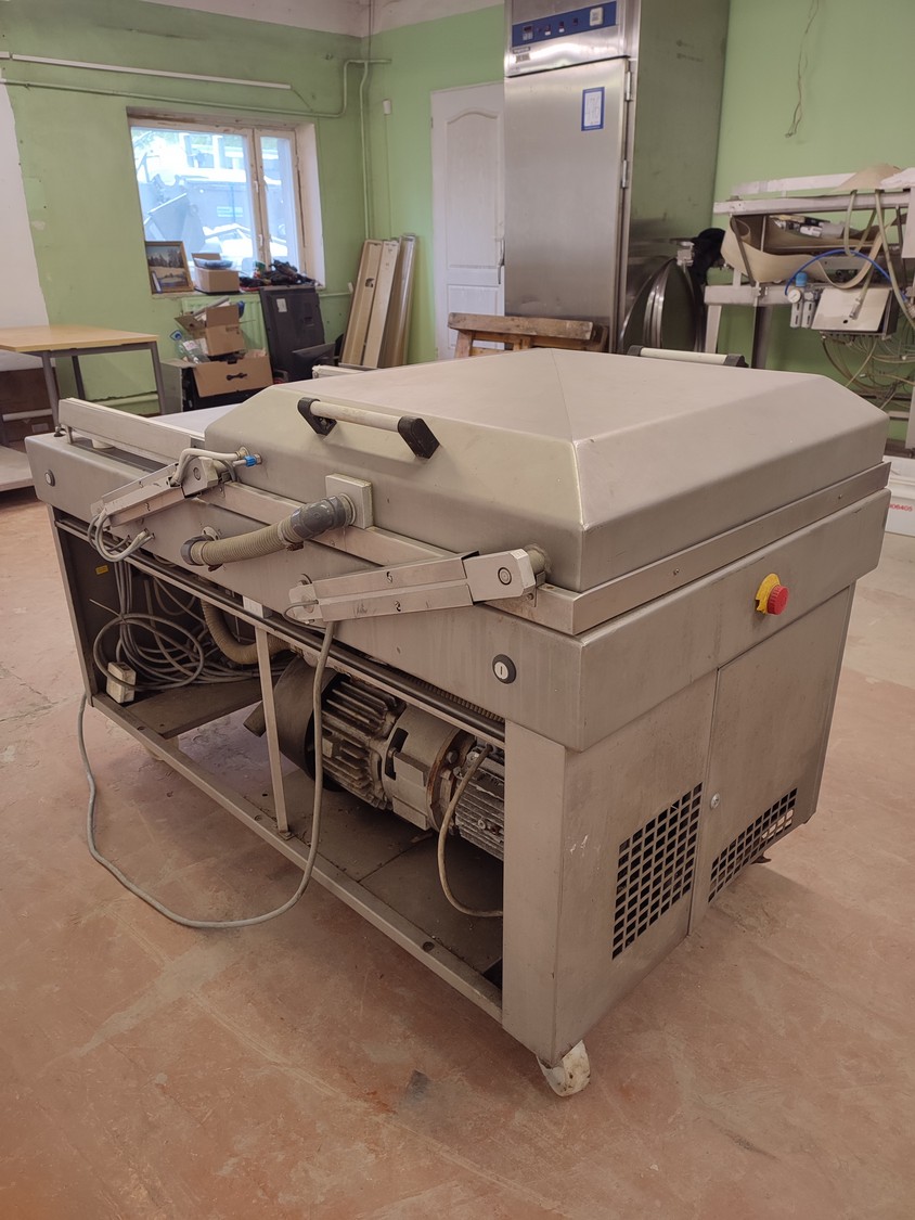 Supervac mobile double chamber vacuum machine, type: GK 289, number: 950047, year of construction: 1995, 400 V, 3 Ph, 50 Hz, 14 A, 5,6 kW, seal length: (4x) 660 mm, dimensions chamber: (2x) 660 mm x 780 mm, Busch vacuum pump, type: RA 160 B 4Z2 IQZZ, serial number: LL011E0202, year of construction: 1994, capacity: 160 m³ per hour, total dimensions: 1700 mm x 980 mm x 1100 mm. Technical condition unknow.