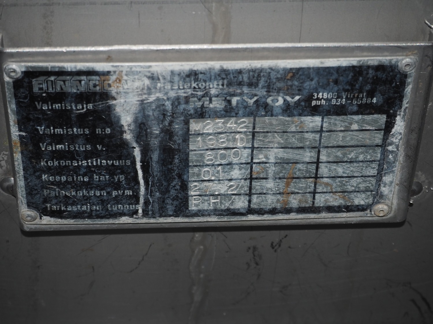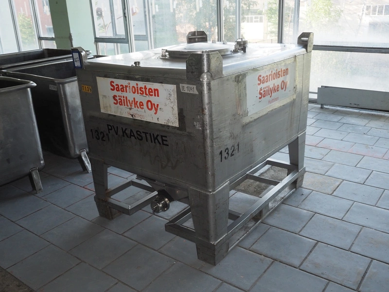 Finncont s/s tank, volume: 800 liter, dimensions: 1200 mm x 1000 mm x 1130 mm.