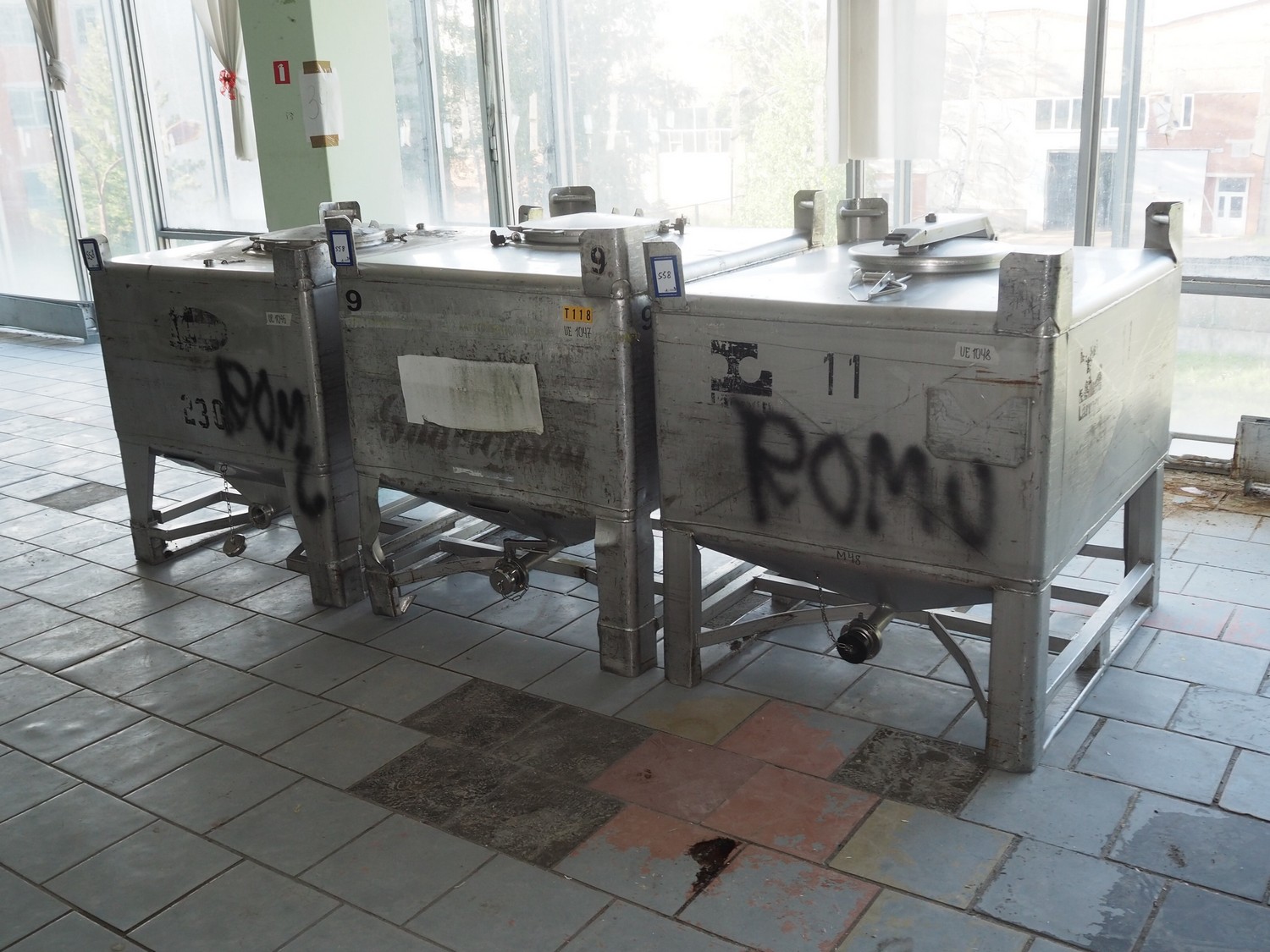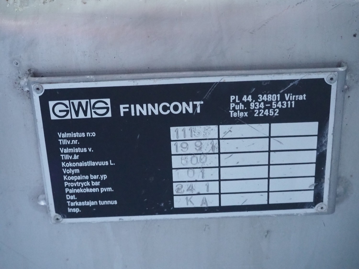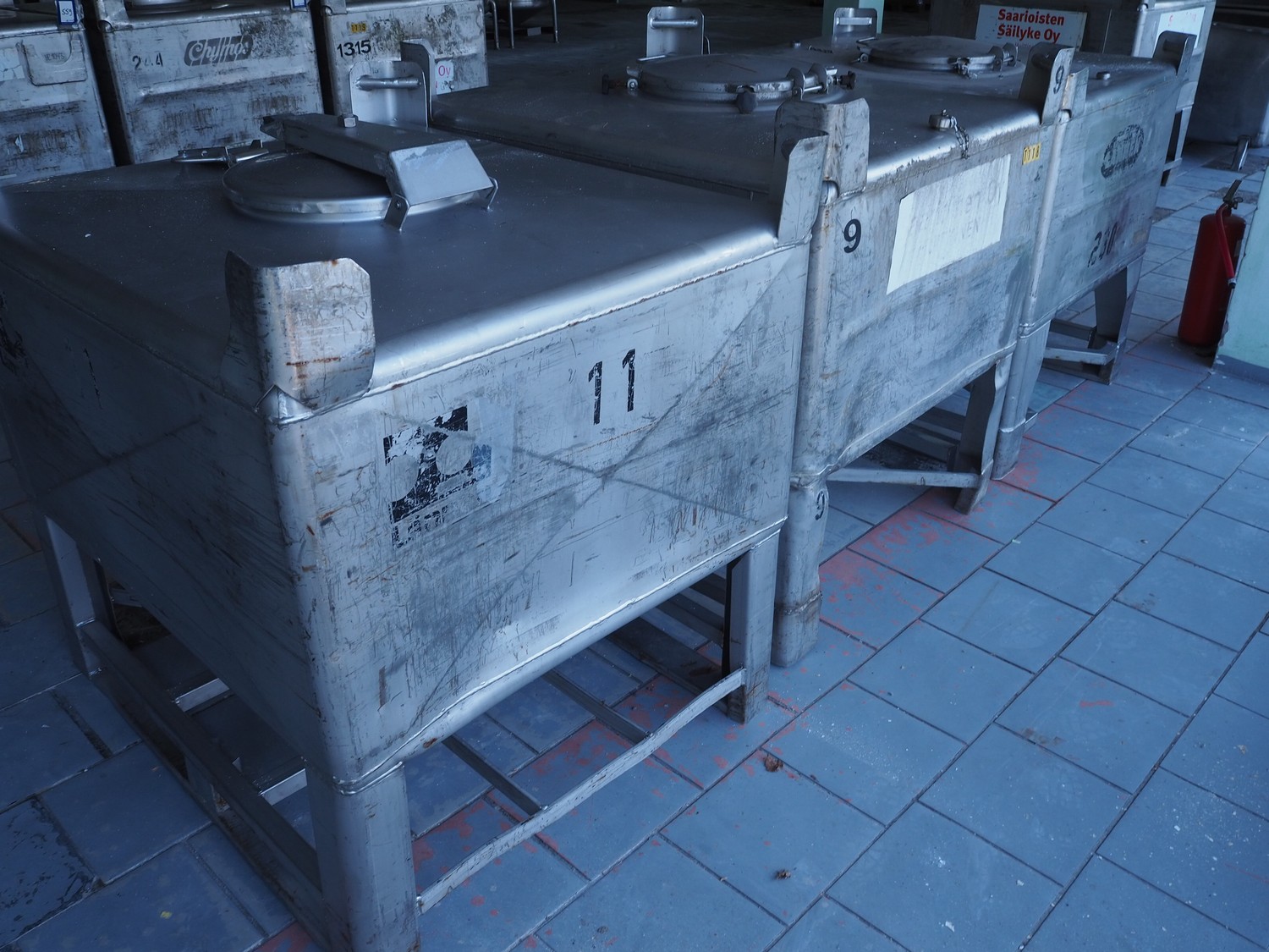 3 Finncont s/s tanks, volume: 800 liter, dimensions: (3x) 1200 mm x 1000 mm x 1130 mm.