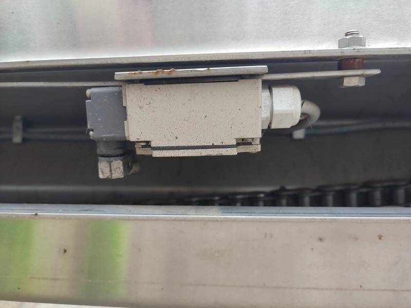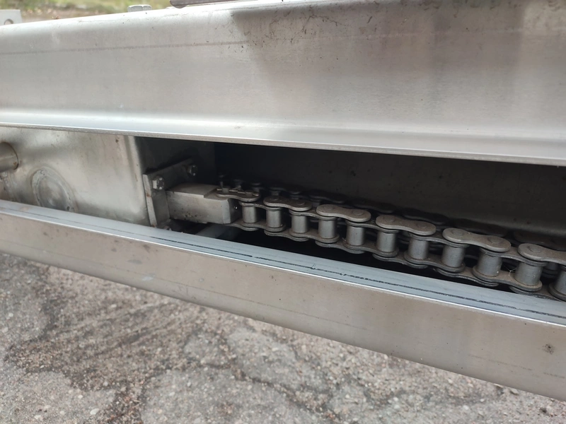 RTL s/s lifter for 200 liter meat bins, model: RTL 6124-NKS, serial number: 6507/2, year of construction: 2003, 230/400 V, 6 A, 0.55 kW, weight: 250 kg, dimensions: 1025 mm x 1250 mm x 3275 mm. Incomplete.