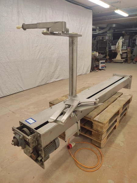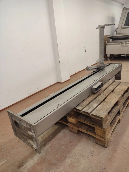 Wolfking Scanio s/s lifter for 200 liter meat bins, type: L 7, serial number: 8989, year of construction: 1999, 400 V, 3 Ph, 50 Hz, 3.5 A, 2.4 kW, max load: 300 kg, dimensions: 2800 mm x 600 mm x 1350 mm.