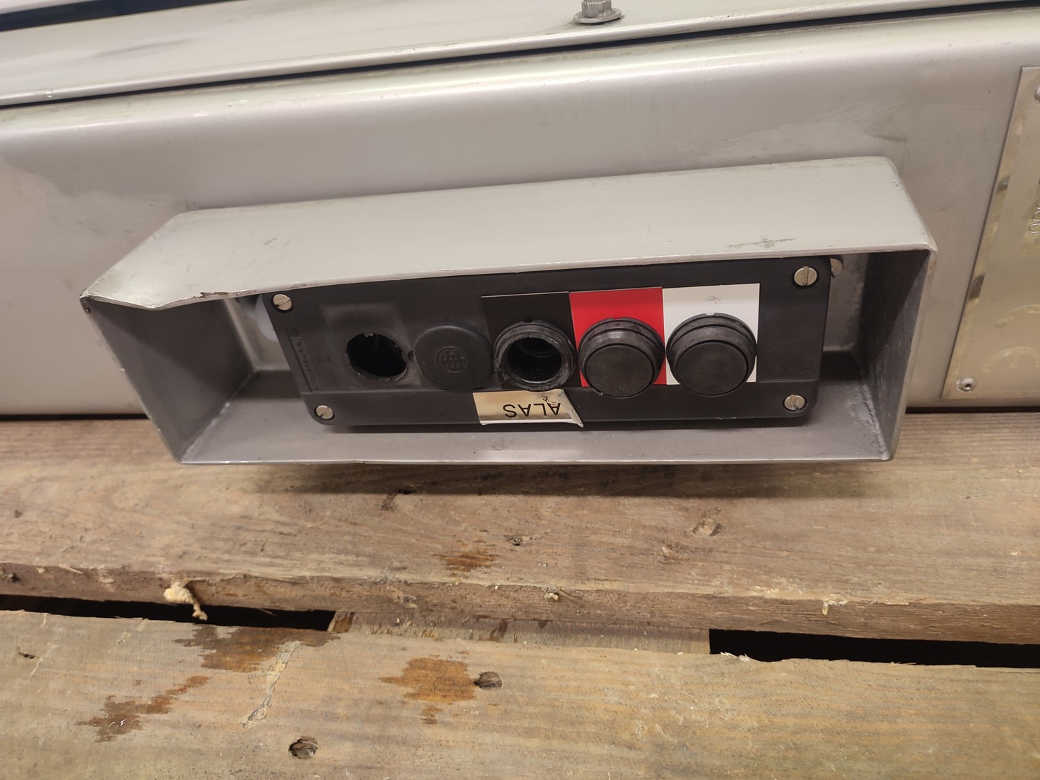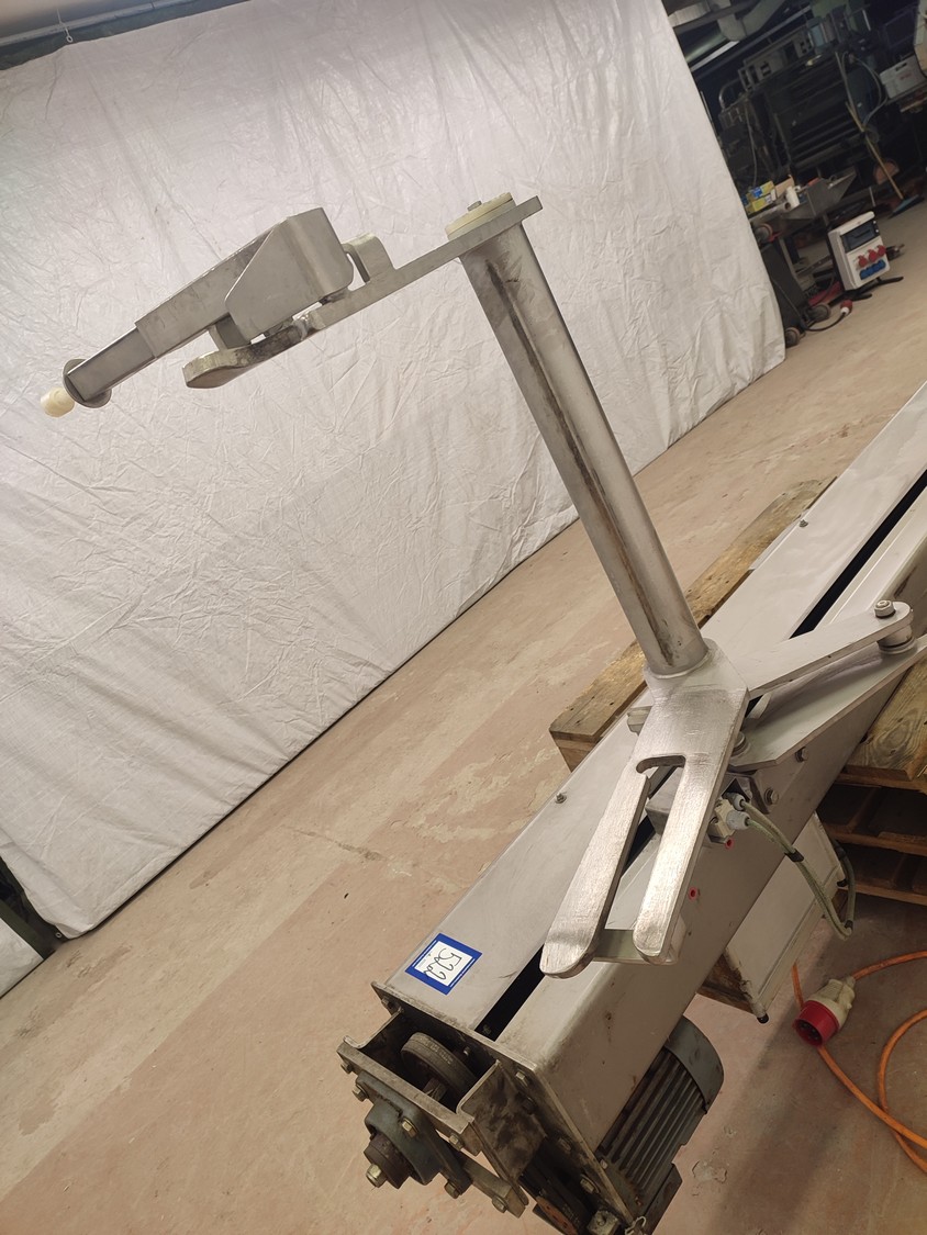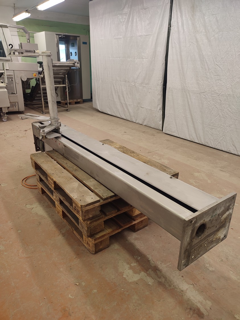 Wolfking Scanio s/s lifter for 200 liter meat bins, type: L 7, serial number: 8989, year of construction: 1999, 400 V, 3 Ph, 50 Hz, 3.5 A, 2.4 kW, max load: 300 kg, dimensions: 2800 mm x 600 mm x 1350 mm.