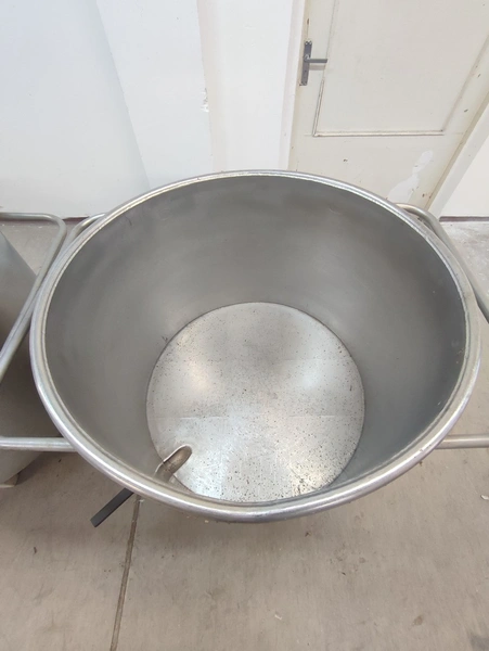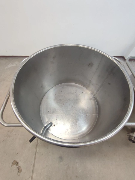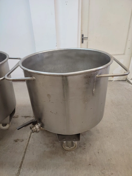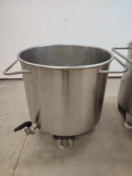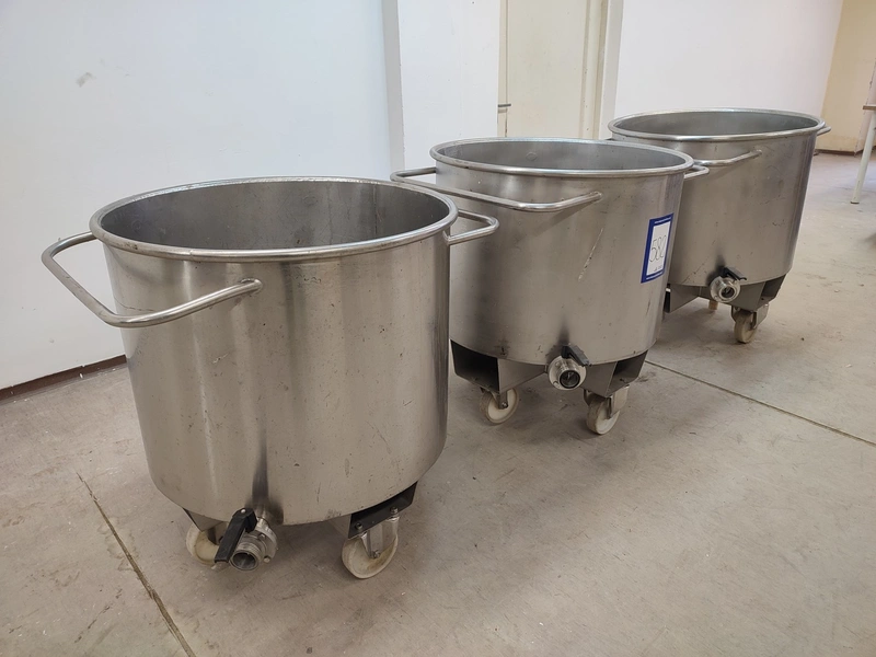 3 s/s mobile tubs, inside dimensions: (3x) Ø 785 mm x 620 mm, total dimensions: (3x) 1000 mm x 830 mm x 950 mm.