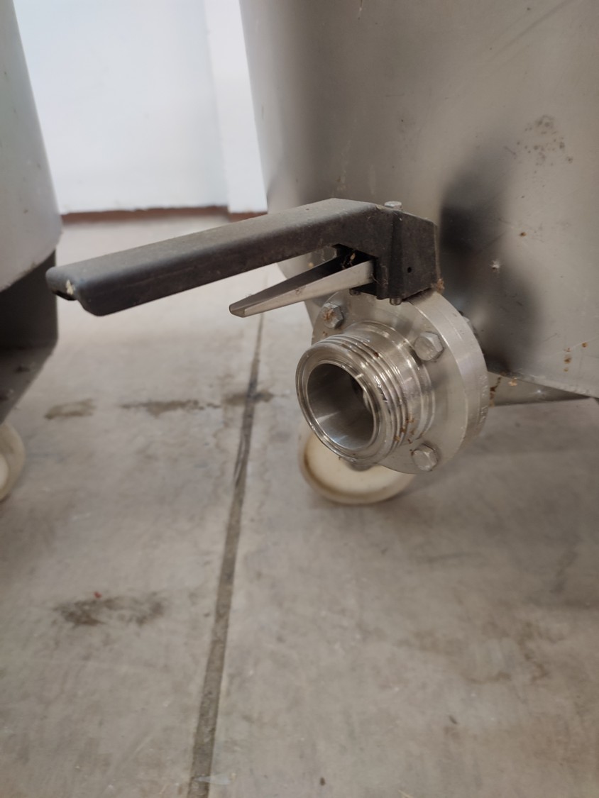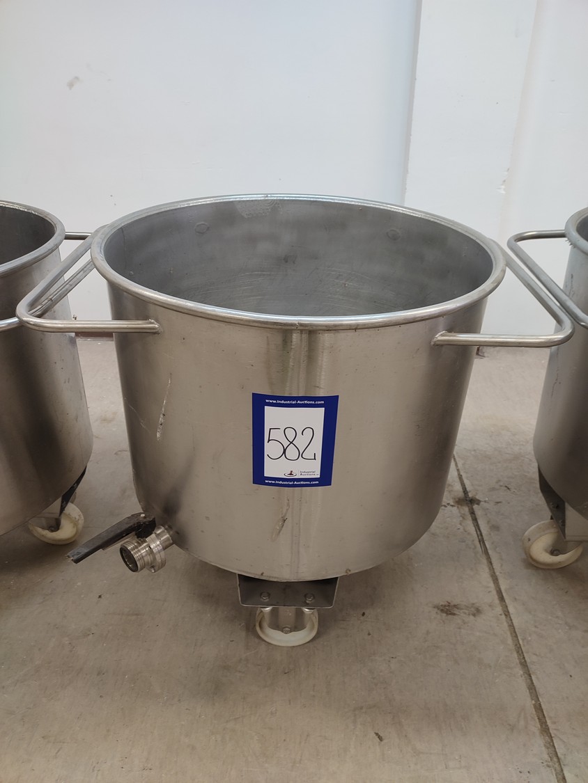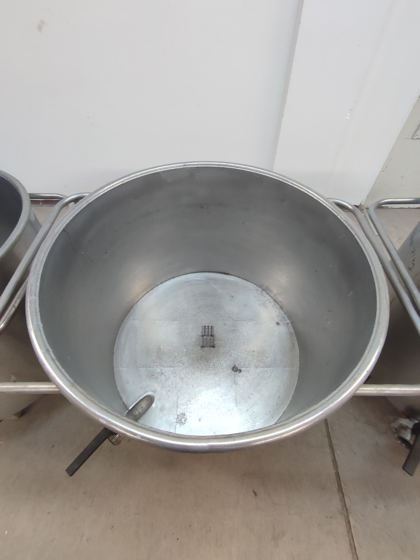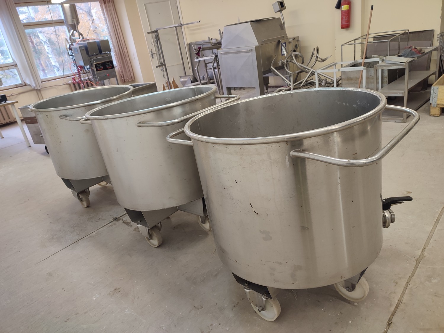 3 s/s mobile tubs, inside dimensions: (3x) Ø 785 mm x 620 mm, total dimensions: (3x) 1000 mm x 830 mm x 950 mm.