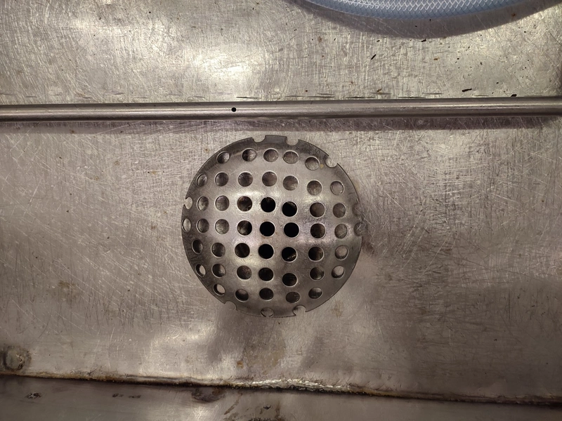 Mobile s/s tub with drain, dimensions: 1650 mm x 1050 mm x 880 mm.