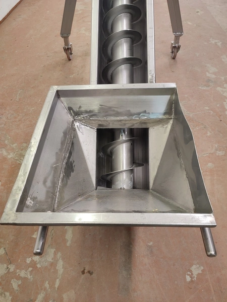 Forsfood mobile elevating screw, type: RUUVI-KULJETIN, number: 1868, 400 V, 3 Ph, 0.55 kW, s/s screw, screw width: 250 mm, elevating height: 1700, total dimensions: 3900 mm x 1300 mm x 2500 mm.