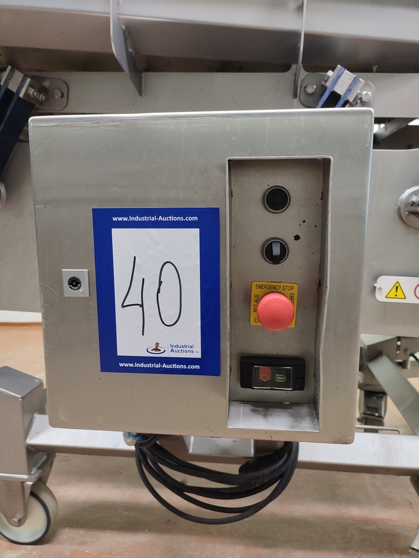 Key Technology mobile vibrating gutter, model: SH01-045461, number: W2008124-020816, year of construction: 2017, s/s gutter, dimensions: 2640 mm x 1200 mm x 1300 mm.