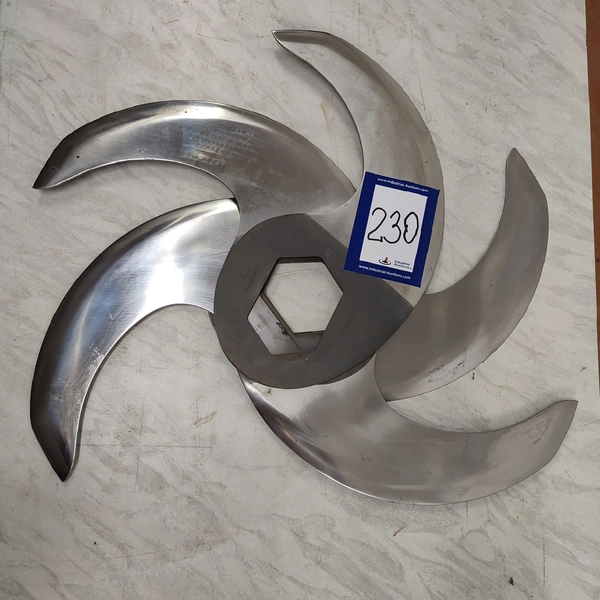 5 GW Steffens bowl cutter blades, type: SY 200, radius: 276 mm, thickness: 4 mm, shaft/hex 70 mm, total dimensions: 360 mm x 205 mm x 20 mm.