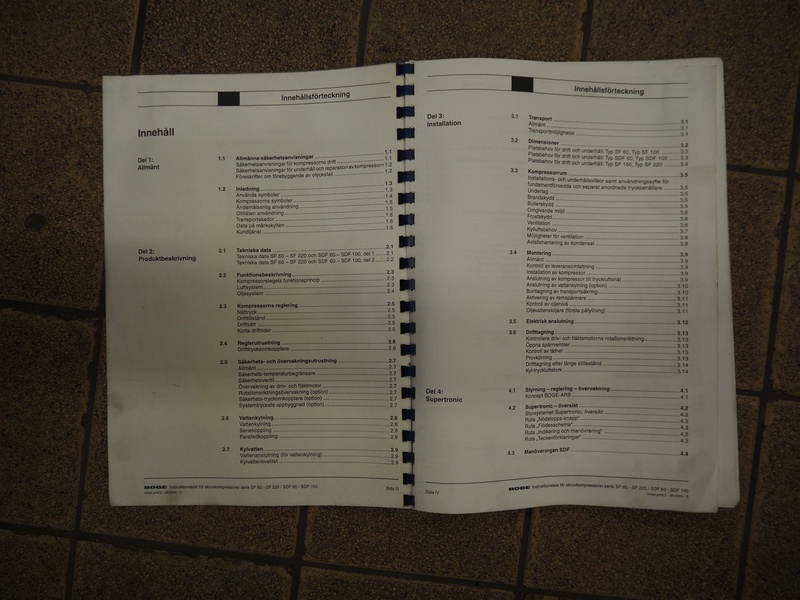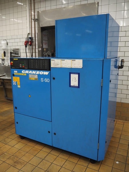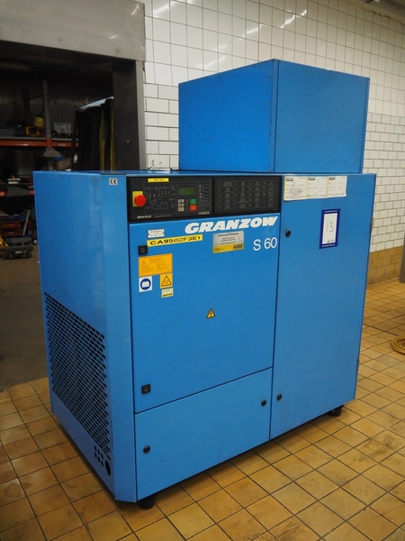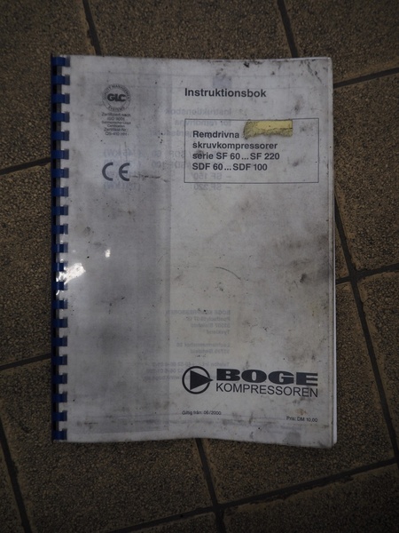 Boge screw compressor, type S 60, serial number: 40233, year of construction: 2001, air flow: 6.10 m³ per minute, dimensions: 1650 mm x 950 mm x 1950 mm.